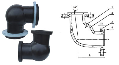 可曲撓橡膠彎頭,簡稱橡膠彎頭,是由織物增強(qiáng)的橡膠件與平形活接頭、松套金屬法蘭或螺紋管法蘭組成,用于管道隔振降噪、補(bǔ)償位移的彎頭。